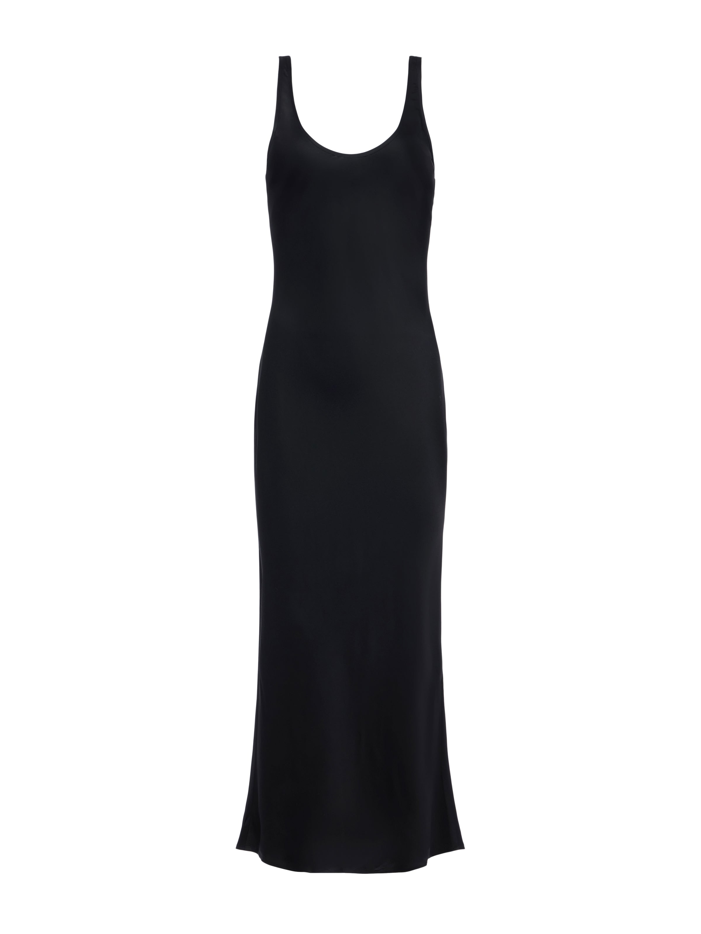 The definition of day to night versatility is the Akiya tank dress—minimal, flattering, and back in timeless black. • Bias-cut satin • Deep scoopneck • No closures Style No. 61120PLY-BLAC DETAILS & FIT - Model Details: Height 5'9" | Bust 32" | Waist 24" | Hips 34" | Wearing Size XS - About 53" From Shoulder to Hem MATERIALS & CARE Composition - 55% Rayon 45% Viscose - Imported Care - Dry clean only - Do not wash - No bleach - No tumble dry - Low iron if needed
