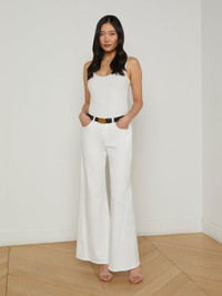 Meet your new Beau, the on-trend fit that’s become an instant L’AGENCE favorite. This fitted-through-the-hips wide leg features a twisted seam that flatters all figures. Now in white. • Subtle stretch denim • High rise • 5-pocket design • Zip fly and button closure Style No. 2938PNN-BLAN DETAILS & FIT - Model Details: Height 5'10" | Bust 34" | Waist 24" | Hips 35" | Wearing Size 25 - Rise: 10.5" - Inseam: 33" - Leg Opening: 29" MATERIALS & CARE Composition - 98% Cotton 2% Elastane - Made in Los Angeles Care - Machine wash