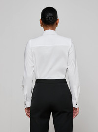 Style No. 40784NPO2-WHBL DETAILS & FIT - Model Details: Height 5'9.5" | Bust 34" | Waist 24" | Hips 34" | Wearing Size XS - About 21.4" From Shoulder to Waist - Sleeve Length: 23.8" MATERIALS & CARE Composition - 76% Organic Cotton 22% Polyester 2% Elastane - Imported Care - Dry clean only