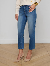 Style No. 2980BLD-CMBR DETAILS & FIT - Model Details: Height 5'10" | Bust 32" | Waist 24" | Hips 34.5" | Wearing Size 25 - Rise: 10.5" - Inseam: 27" - Leg Opening: 13" MATERIALS & CARE Composition - 79% Cotton 20% Repreve Polyester 1% Spandex - Imported Care - Machine wash