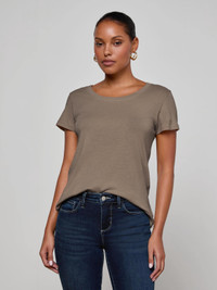 Style No. 5484DCJ-DRWD DETAILS & FIT - Model Details: Height 5'9.5" | Bust 34" | Waist 24" | Hips 34" | Wearing Size XS - About 24" From Shoulder to Hem - Sleeve Length: 6" MATERIALS & CARE Composition - 100% Cotton - Made in Los Angeles Care - Hand wash
