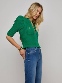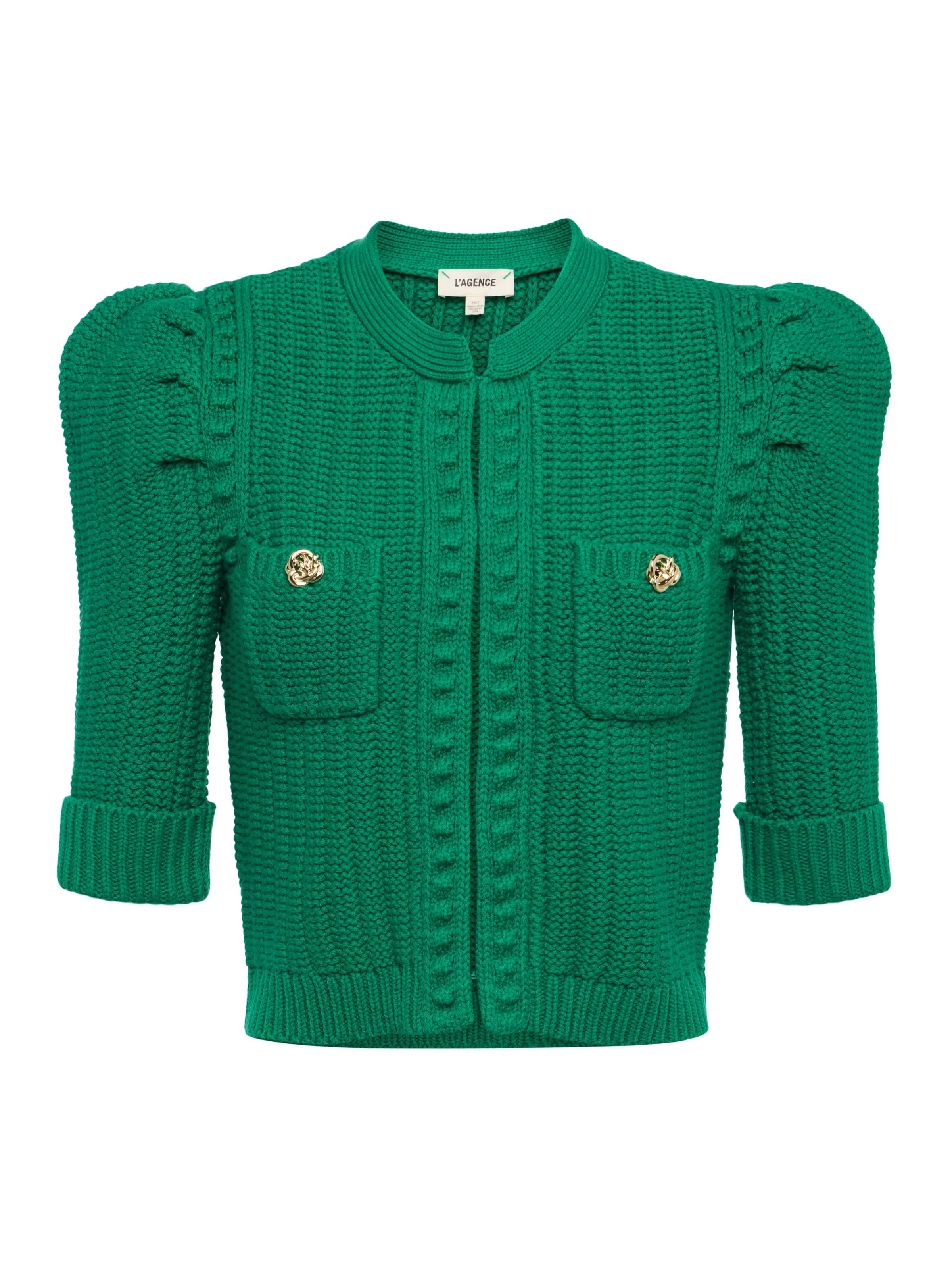 Style No. 8904SPO-KGGK DETAILS & FIT - Model Details: Height 5'9" | Bust 32" | Waist 24" | Hips 34" | Wearing Size XS - About 18.6" From Shoulder to Hem - Sleeve Length: 16.25" MATERIALS & CARE Composition - 59% Cotton 38% Acrylic 2% Nylon 1% Spandex - Imported Care - Dry clean only