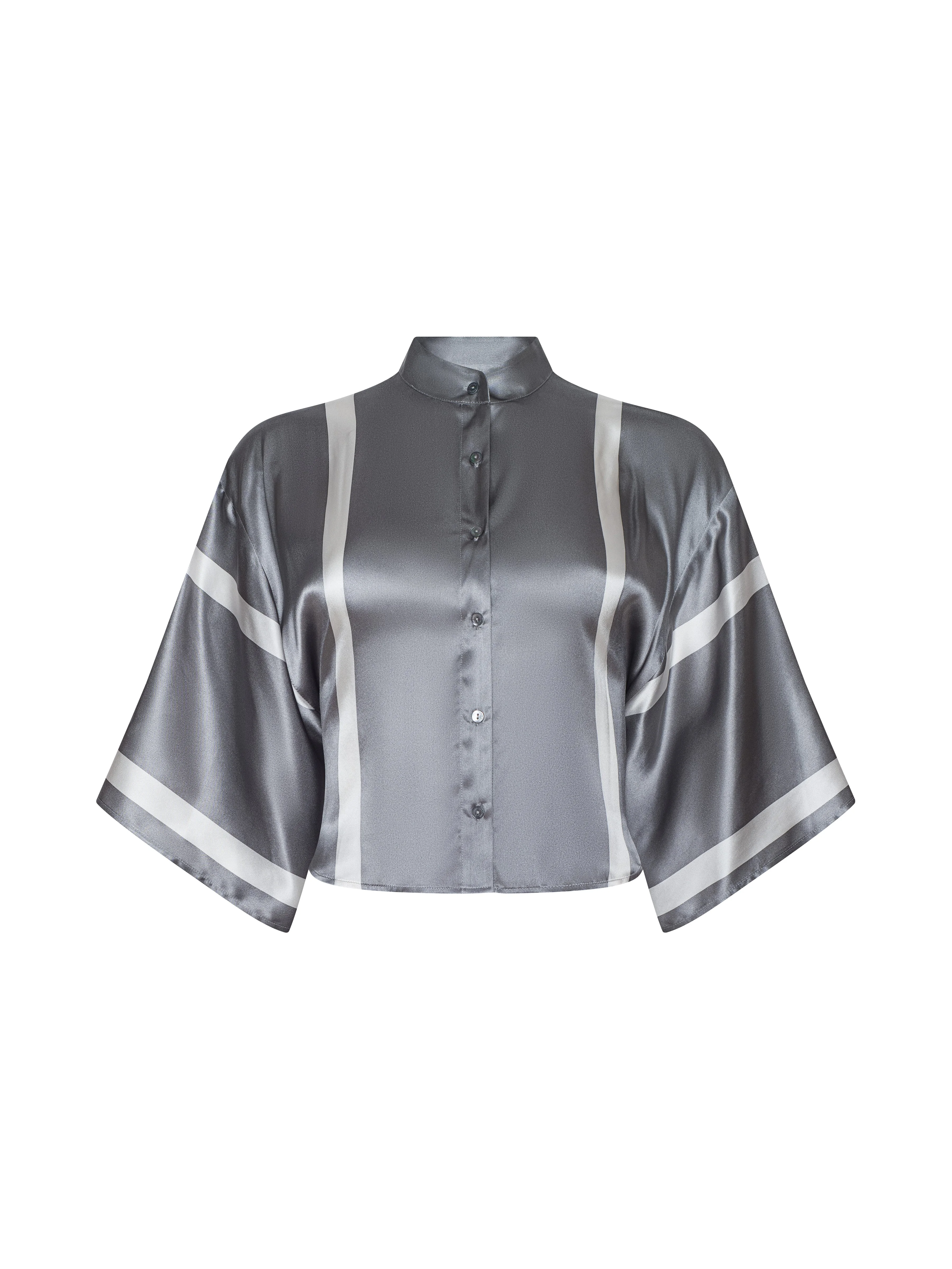 Style No. 40788LGS-GRSW DETAILS & FIT - Model Details: Height 5'9.5" | Bust 32" | Waist 24" | Hips 35" | Wearing Size XS - About 20.6" From Shoulder to Hem - Sleeve Length: 11.5" MATERIALS & CARE Composition - 100% Silk - Imported Care - Dry clean only - Do not wash - No bleach - No tumble dry - Low iron if needed