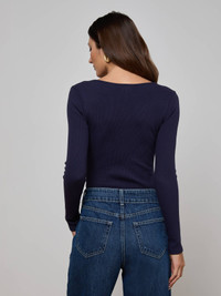 Style No. 5831CMR-DPMI DETAILS & FIT - Model Details: Height 5'10" | Bust 32" | Waist 24" | Hips 34.5" | Wearing Size XS - About 26.25" From Shoulder to Bottom - Sleeve Length: 23.5" MATERIALS & CARE Composition - 47% Cotton 47% Modal 6% Spandex - Made in Los Angeles Care - Hand wash