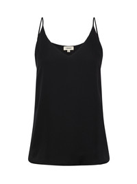 A slinky, 100% silk camisole in true black. Sharp v-neckline, adjustable spaghetti straps, and darted cups streamline the silhouette, and make for the perfect layering piece. Style No. 4975GG-BLAC DETAILS & FIT - Model Details: Height: 5’10" | Bust 34” | Waist 24" | Hips 35” | Wearing Size XS - About 22" From Shoulder to Hem MATERIALS & CARE Composition - 100% Silk - Imported Care - Dry clean only