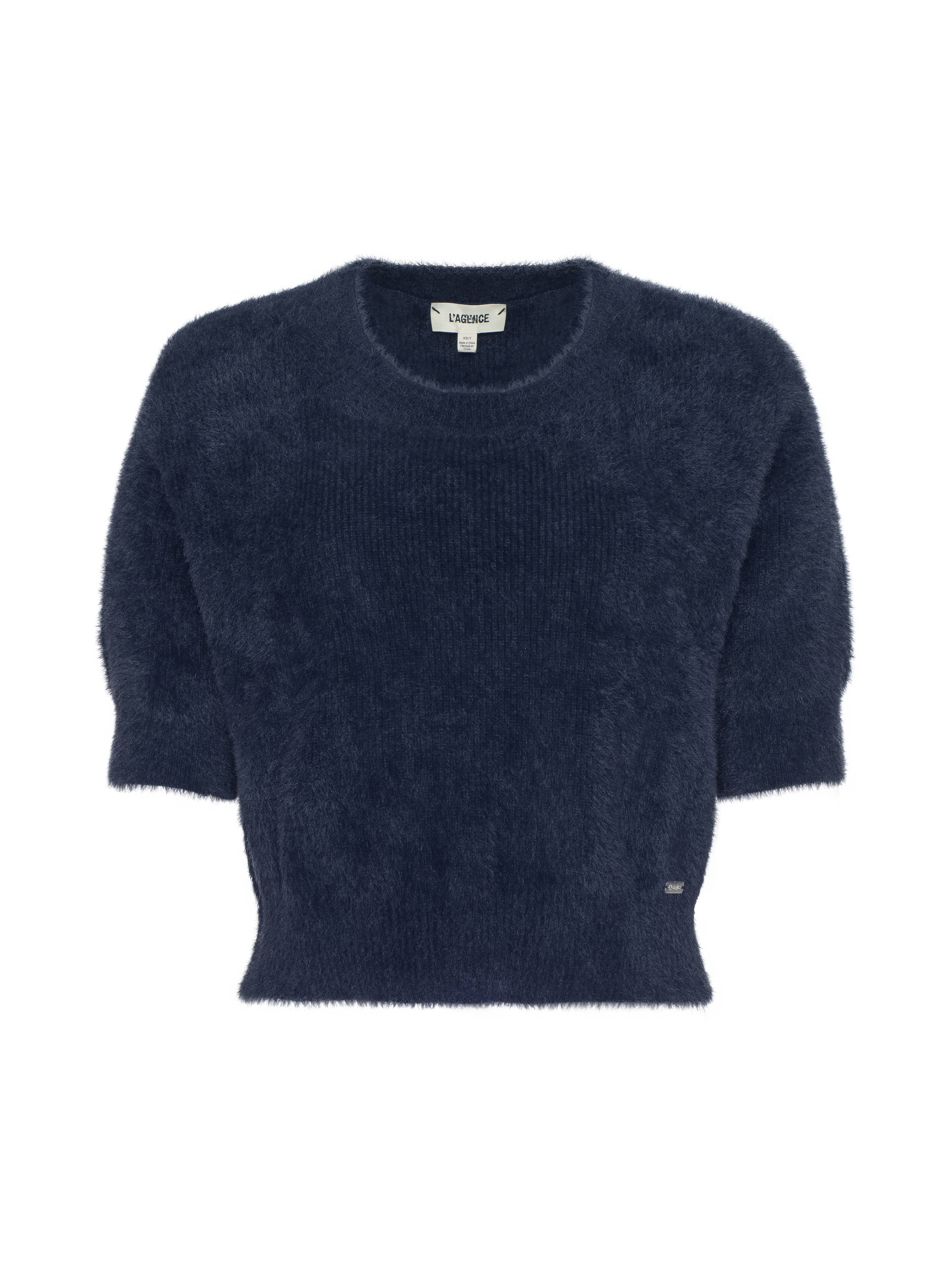 Style No. 80115FUZ3-MIDN DETAILS & FIT - Model Details: Height 5'10" | Bust 32" | Waist 24" | Hips 34.5" | Wearing Size XS - About 18.6" From Shoulder to Hem - Sleeve Length: 8.5" MATERIALS & CARE Composition - 100% Nylon - Imported Care - Dry clean only