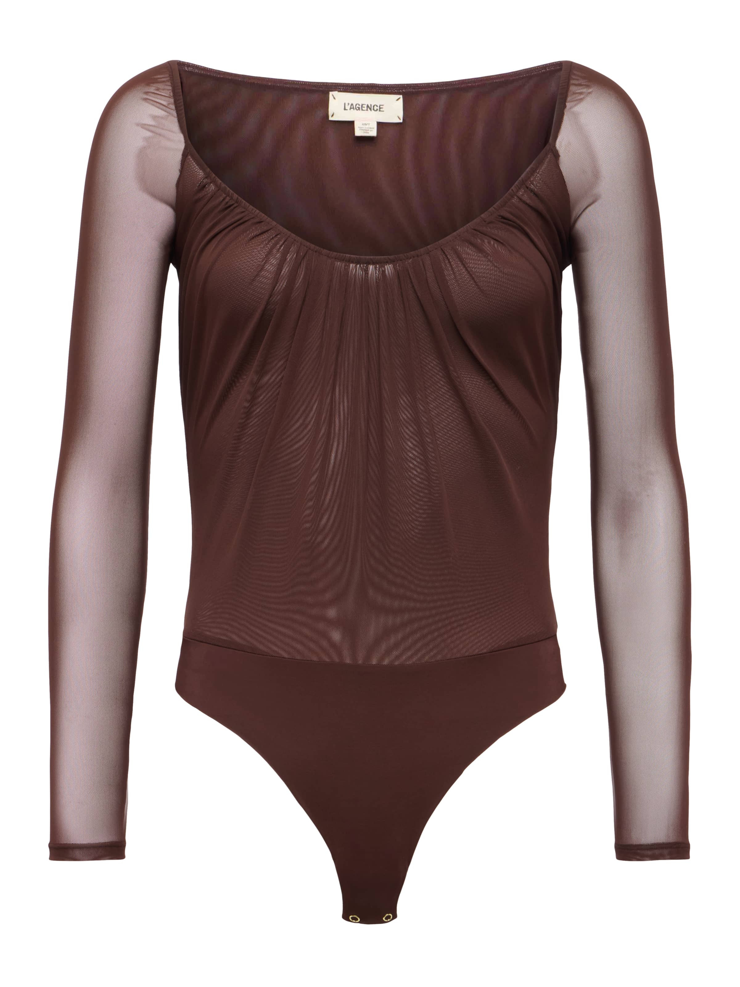 Style No. 5822PRM-CHOC DETAILS & FIT - Model Details: 5'10" | Bust 32” | Waist 23.5” | Hips 34.5” | Wearing Size XS - About 11" From Shoulder to Waist - Sleeve Length: 24.25" MATERIALS & CARE Composition - 90% Nylon 10% Spandex - Imported Care - Dry clean only - Do not wash - No bleach - No tumble dry - Low iron if needed