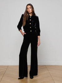 Style No. 1884SVT3-BLAC DETAILS & FIT - Model Details: Height 5'9.5" | Bust 32" | Waist 24" | Hips 35" | Wearing Size 2 - About 19.25" From Shoulder to Hem - Sleeve Length: 19" MATERIALS & CARE Composition - 82% Viscose 18% Silk - Imported Care - Dry clean only
