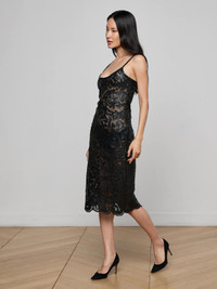Style No. 61500LTK-BLAC DETAILS & FIT - Model Details: Height 5'9" | Bust 30" | Waist 24" | Hips 34" | Wearing Size 2 - About 37.25" From Shoulder to Hem MATERIALS & CARE Composition - 50% Polyurethane 50% Polyester - Imported Care - Dry clean only