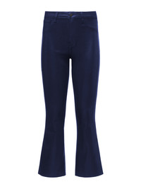 A high-rise cropped flare jean in a lustrous coated premium denim with a midnight-blue hue. High-recovery denim hugs from waistband to knee before extending into a flared cropped leg finished with raw hem. Includes five-pocket construction and front zip fly closure. Style No. 2714PDDC-MIDC DETAILS & FIT - Model Details: 5’10.5" | Bust: 33" | Waist: 24" | Hips: 34" | Wearing Size 25 - Rise: 9.5" - Inseam: 26" - Leg Opening: 17" MATERIALS & CARE Composition - 86% Cotton, 11% Elastane, 3% Spandex - Made in Los Angeles Care - Spot wash disinfect - Dry clean only