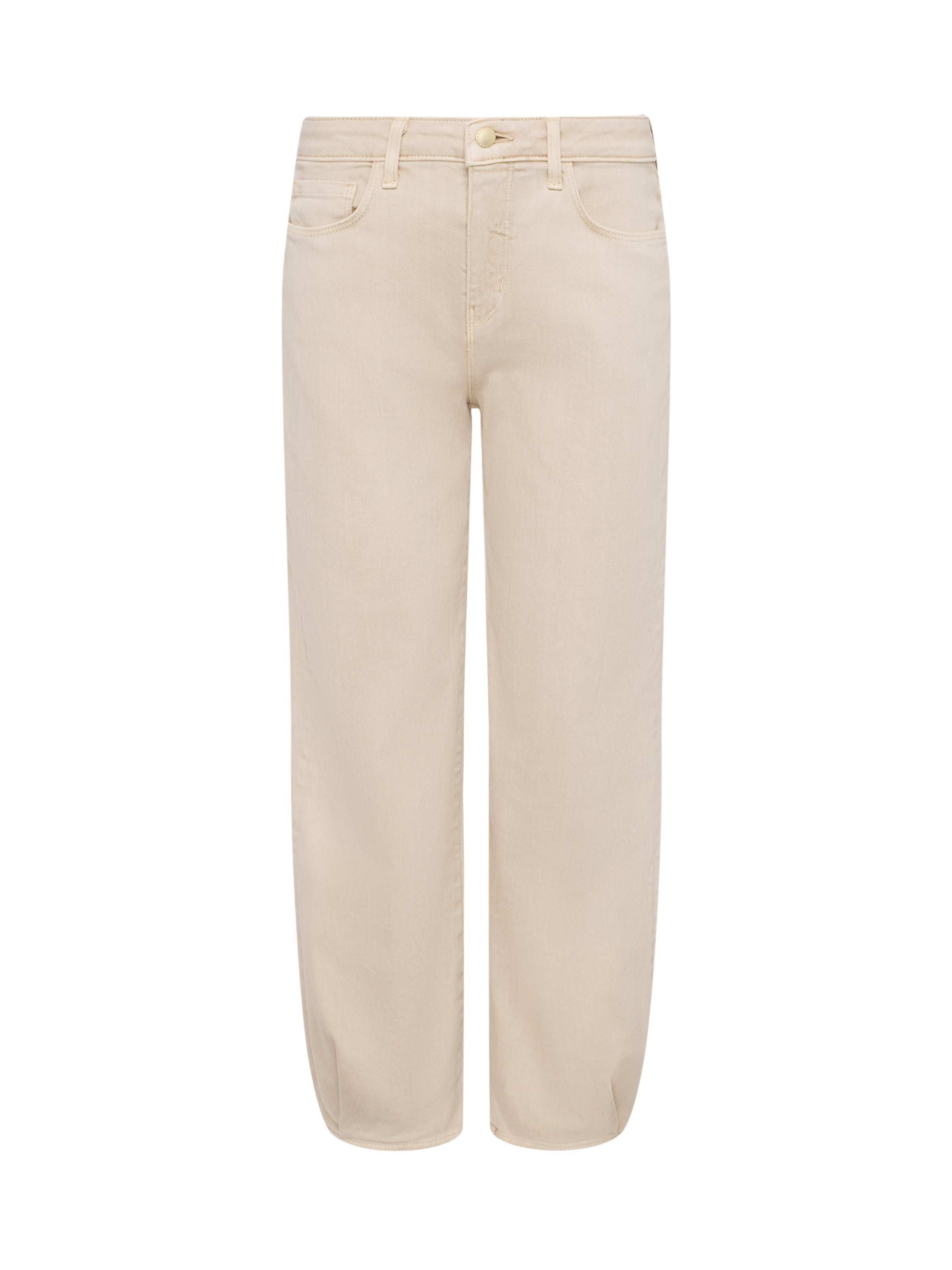 The jean of the moment, in an on-trend fit and neutral tan. • Subtle stretch denim • High-rise tapered leg • 5-pocket construction • Front zip fly and button closure Style No. 2920KBO-BISC DETAILS & FIT - Model Details: Height 5'10" | Bust 32" | Waist 23.5" | Hips 34.5"| Wearing Size 25 - Rise: 10" - Inseam: 26" - Leg Opening: 13" MATERIALS & CARE Composition - 98% Cotton 2% Spandex - Made in Los Angeles Care - Machine wash