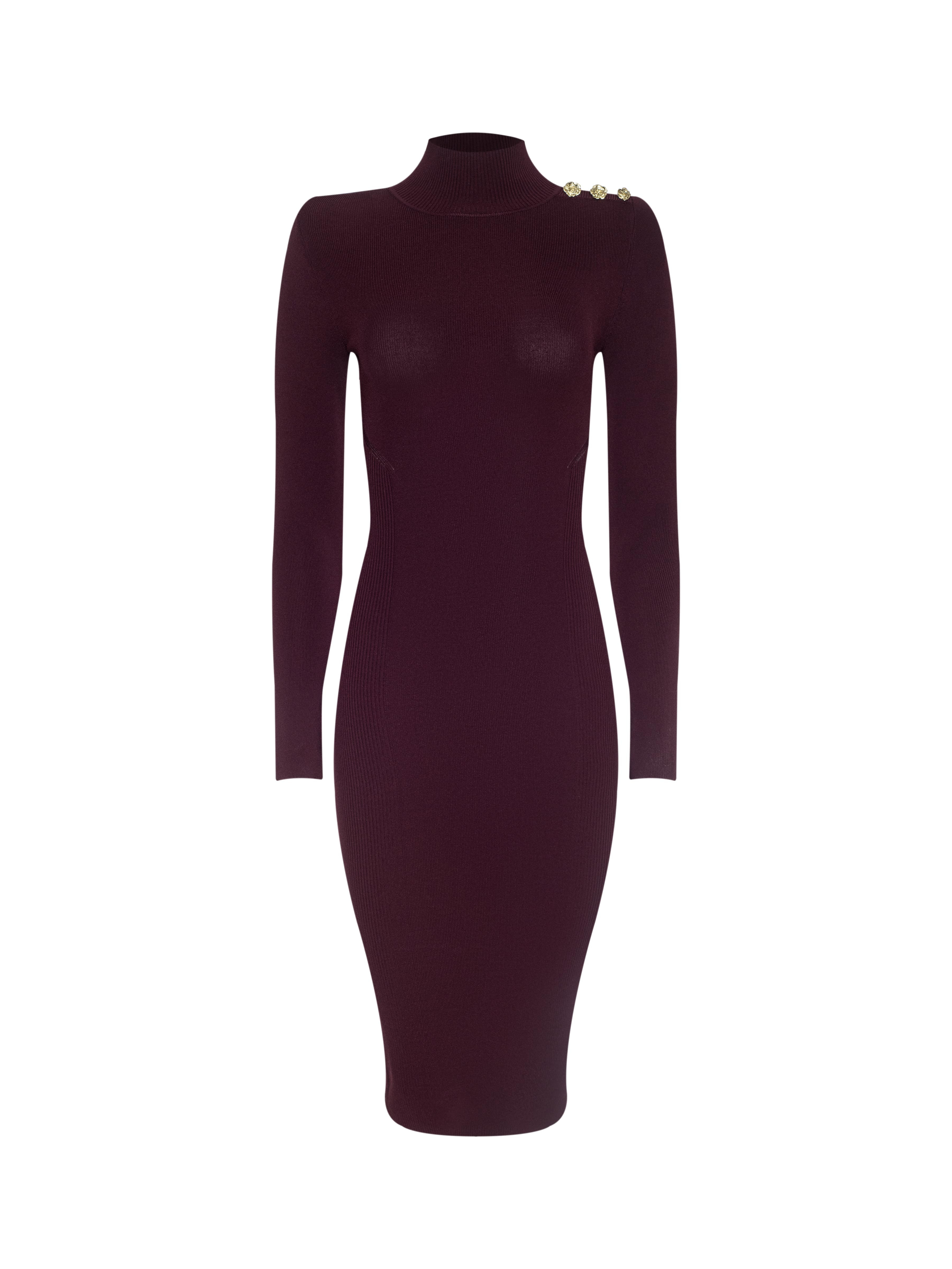 Style No. 80055NXC2-DPGD DETAILS & FIT - Model Details: Height 5'10" | Bust 32” | Waist 23.5” | Hips 34.5” | Wearing Size XS - About 43" From Shoulder to Hem - Sleeve Length: 24.8" MATERIALS & CARE Composition - 55% Rayon 43% Nylon 2% Spandex - Imported Care - Dry clean only