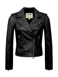 A feminine take on the moto-style leather jacket, crafted in 100% premium lambskin leather. The Biker features metal snaps at the lapel, zipper details at the sleeves, slimming panel construction along the back, and an off-center two-way zipper closure. Fully lined. Style No. 1409VSLA-BLAC DETAILS & FIT - Model Details: Height 5’10.5" | Bust 33" | Waist 24" | Hips 34" | Wearing Size XS - About 20.6" From Shoulder to Hem - Sleeve Length: 22.8" MATERIALS & CARE Composition - 100% Lambskin - Imported Care - Dry clean only