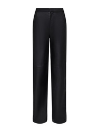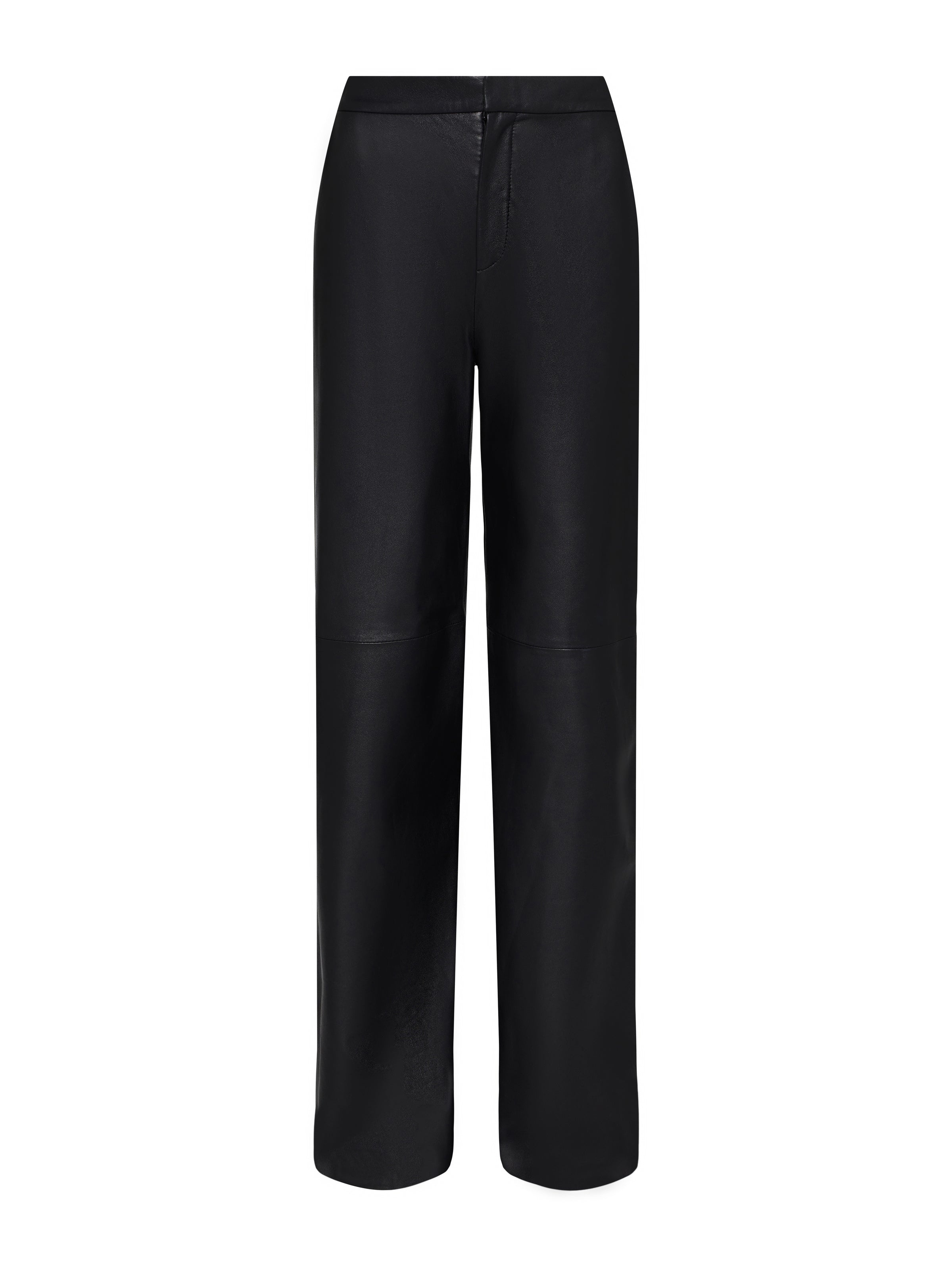 A luxe straight-leg trouser in black lambskin leather. Supple premium-leather hugs from contoured waistband to upper thigh, then releases into a full straight leg. Includes front slant and back welt pockets. With zip fly and hidden hook-and-bar closures. Fully lined. 100% Leather. Style No. 2819MLL2-BLAC DETAILS & FIT - Model Details: Height 5'10" | Bust 32" | Waist 24'' | Hips 34.5'' | Wearing Size 2 - Rise: 11" - Inseam: 34" - Leg Opening: 11.5" MATERIALS & CARE Composition - 100% Lambskin - Imported Care - Dry clean only with leather professional - Do not wash - Do not use bleach - Do not tumble dry - Do not iron - Color transfer or crocking may occur and is especially common with dyed leather