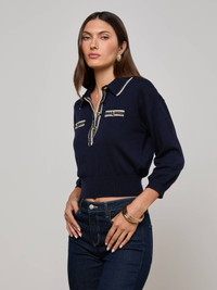 Style No. 80135PQH2-MIVG DETAILS & FIT - Model Details: Height 5'10" | Bust 32" | Waist 24" | Hips 34.5" | Wearing Size XS - About 19.5" From Shoulder to Hem - Sleeve Length: 16" MATERIALS & CARE Composition - 56% Nylon 19% Polyester 15% Acrylic 9% Wool 1% Metallic - Imported Care - Dry clean only - Do not wash - No bleach - No tumble dry - Cool iron