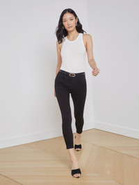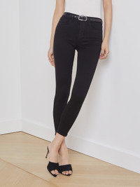 Our signature high-rise skinny jean crafted from premium, luxurious stretch denim in true, saturated black. Tapered leg hugs from hip to ankle, while the contoured waistband defines and slims the natural waist. High-recovery fabric holds its shape, smoothing the silhouette without sacrificing comfort. Style No. 2294DNM-NOIR DETAILS & FIT - Model Details: Height: 5’10" | Bust 34” | Waist 24" | Hips 35” | Wearing Size 25 - Rise: 9.5” - Inseam: 26” - Leg Opening: 9.5” - Matte Black Hardware MATERIALS & CARE Composition - 88% Cotton 10% Polyester 2% Spandex - Made in Los Angeles Care - Machine wash