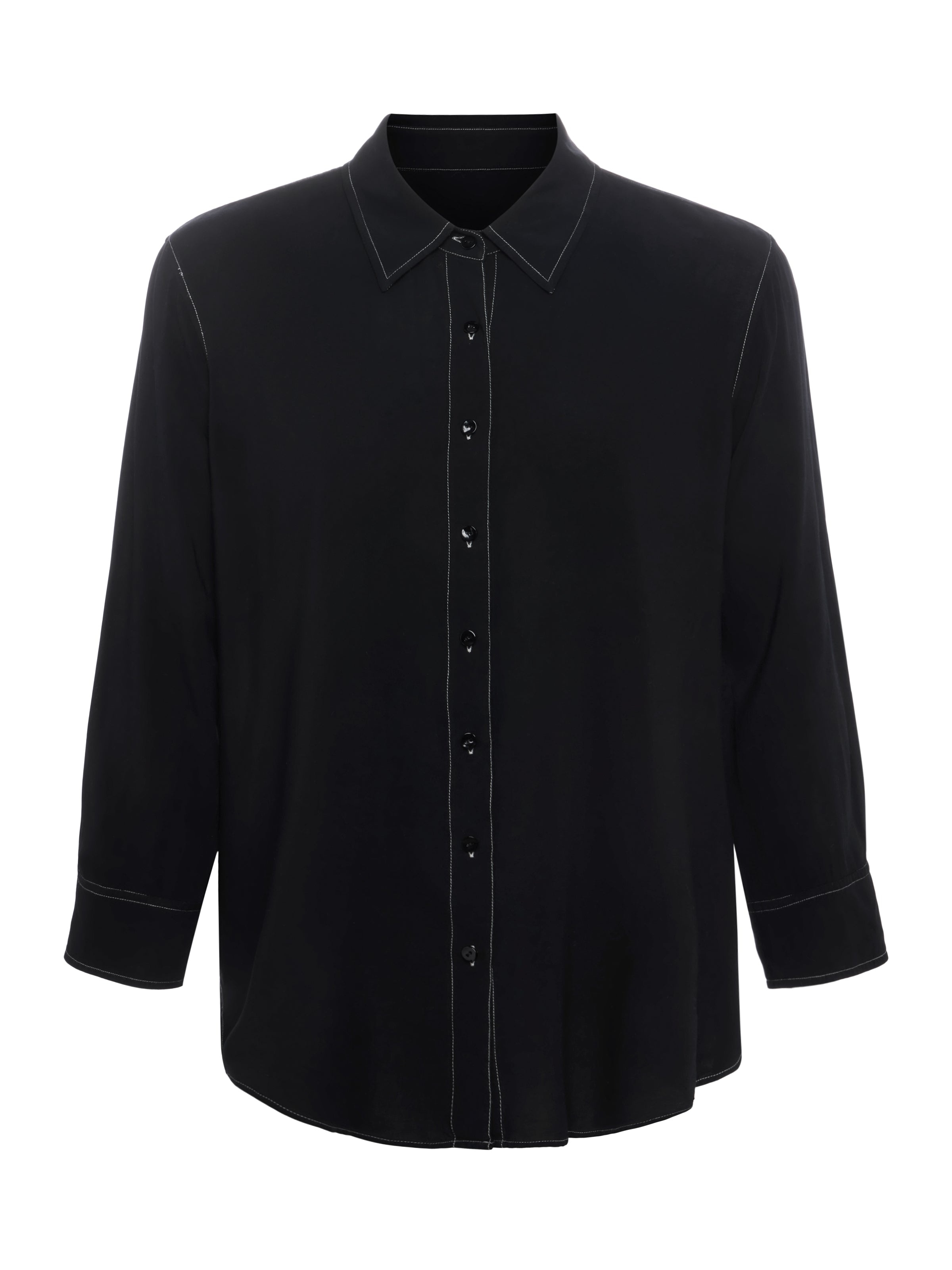 Your easiest button-down is here. Classic shirting details like a sharp collar and cuffed sleeves keep the Marlene polished. A relaxed fit lends a cool, effortless feel. Wear Marlene all season, every season. Style No. 40643JDRM-BLWC DETAILS & FIT - Model Details: Height 5'10" | Bust 32" | Waist 24'' | Hips 34.5'' | Wearing Size XS - About 26" From Shoulder to Hem - Sleeve Length: 18.3" MATERIALS & CARE Composition - 100% Viscose - Imported Care - Dry clean only