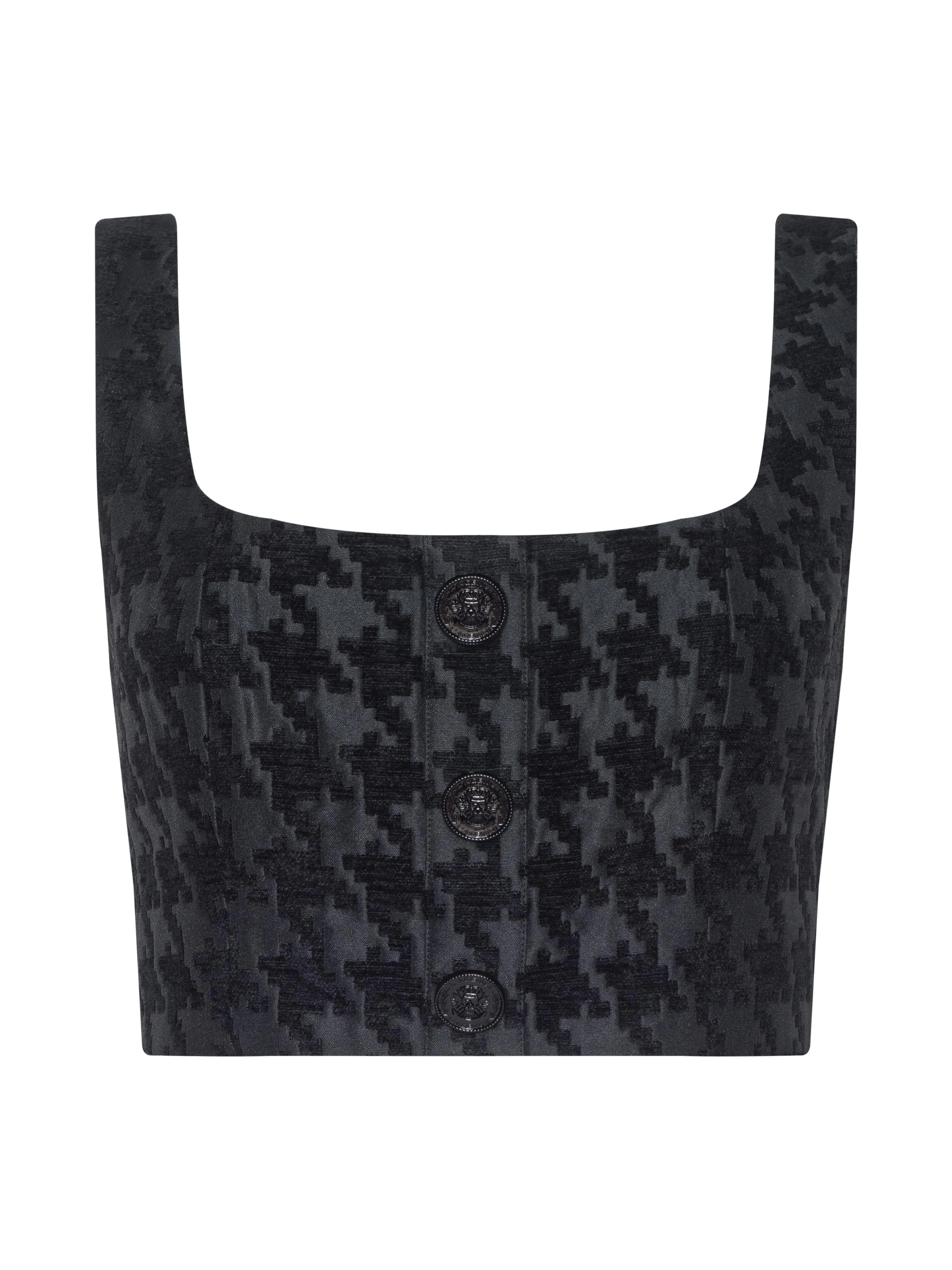 Style No. 40695LKA-BKBK DETAILS & FIT - Model Details: Height 5'9.5" | Bust 32" | Waist 24" | Hips 35" | Wearing Size XS - About 14.5" From Shoulder to Hem MATERIALS & CARE Composition - 72% Acrylic 28% Polyester - Imported Care - Dry clean only - Do not wash - No bleach - No tumble dry - Low iron if needed