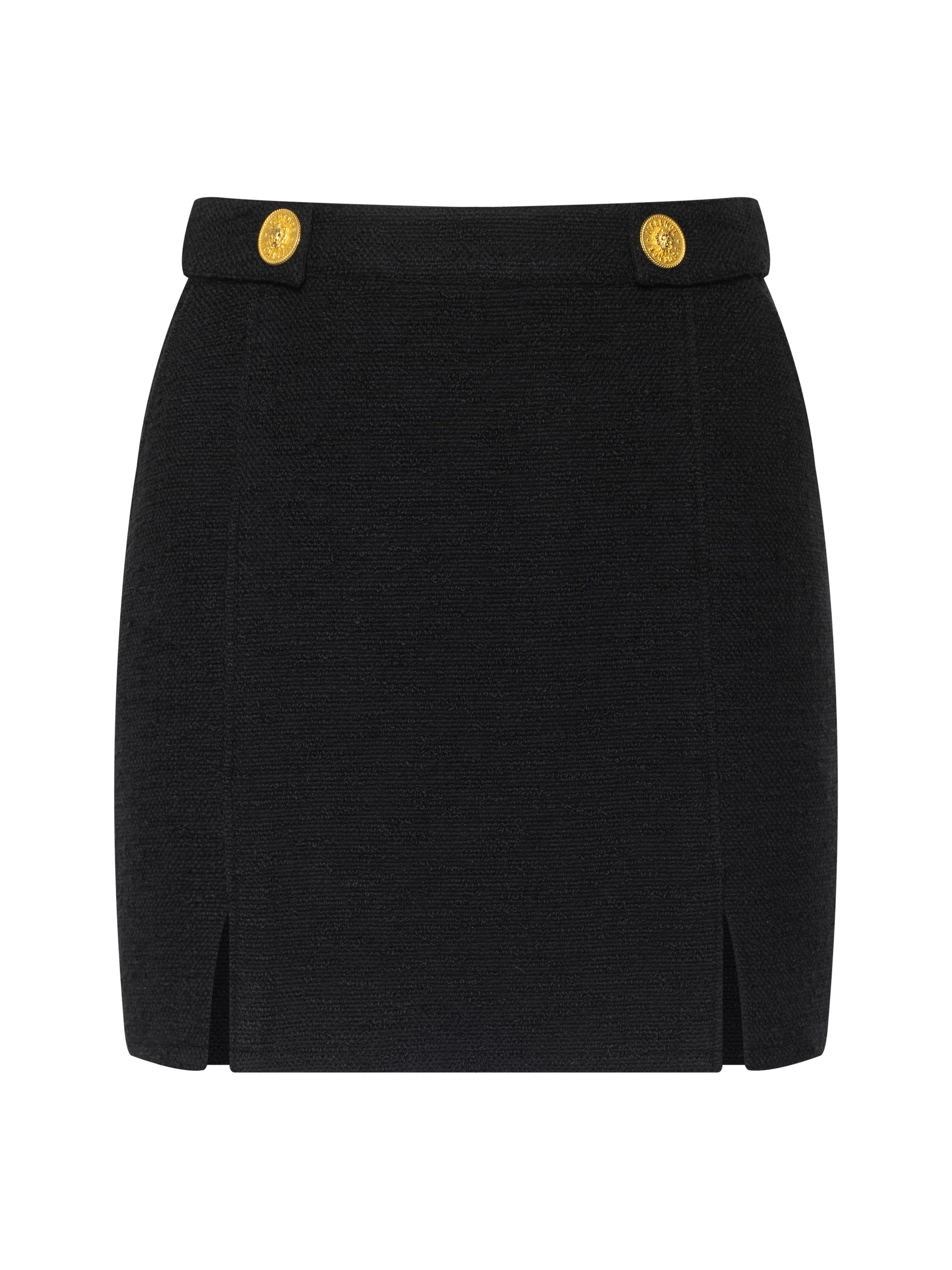 Style No. 3465FQP-BLAC DETAILS & FIT - Model Details: Height 5'9" | Bust 32" | Waist 24" | Hips 34" | Wearing Size 2 - About 15.75" From Waist to Hem MATERIALS & CARE Composition - 90% Cotton 10% Polyester - Imported Care - Dry clean only