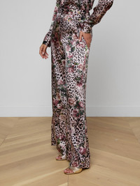 Style No. 2625RBL-PNSS DETAILS & FIT - Model Details: Height 5'9.5" | Bust 34" | Waist 24" | Hips 34" | Wearing Size 2 - Rise: 11" - Inseam: 34" - Leg Opening: 14.25" MATERIALS & CARE Composition - 100% Silk - Imported Care - Dry clean only