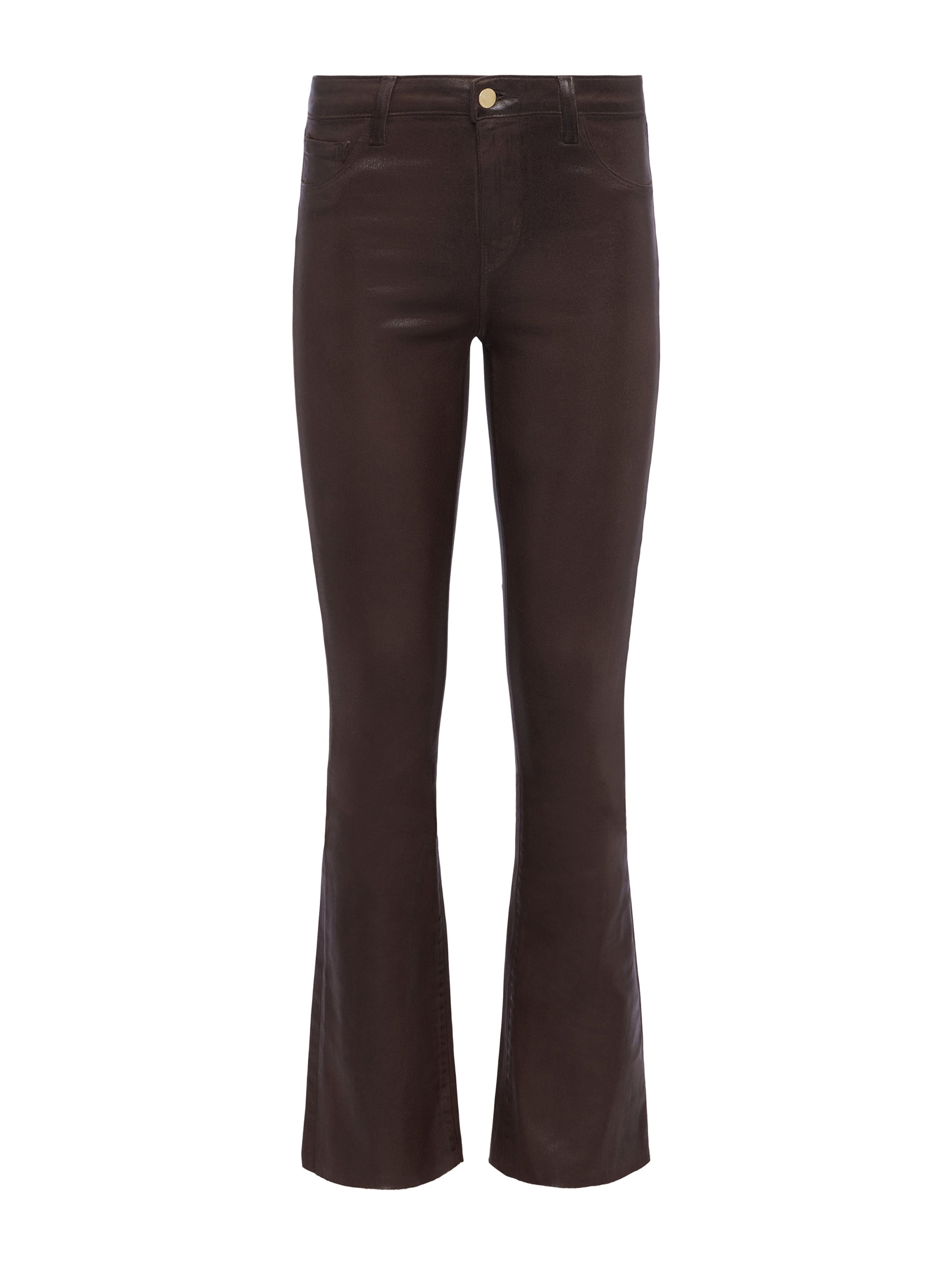 A classic high-rise jean in espresso-brown premium coated stretch denim. With a flattering contoured waistband, style is fitted through hip and thigh before falling in a straight leg to a clean raw hem. Includes five-pocket construction and front zip fly closure. Style No. 2649PDDCR-ESPC DETAILS & FIT - Model Details: Height 5'9" | Bust 32" | Waist 24" | Hips 34" | Wearing Size 25 - Rise: 9.5" - Inseam: 34" - Leg Opening: 17" MATERIALS & CARE Composition - 86% Cotton 11% Elastane 3% Spandex - Made in Los Angeles Care - Spot wash disinfect - Dry clean only