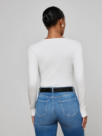 Style No. 5837CMR-WHIT DETAILS & FIT - Model Details: Height 5'9.5" | Bust 34" | Waist 24" | Hips 34" | Wearing Size XS - About 21" From Shoulder to Hem - Sleeve Length: 23.5" MATERIALS & CARE Composition - 47% Cotton 47% Modal 6% Spandex - Made in Los Angeles Care - Hand wash