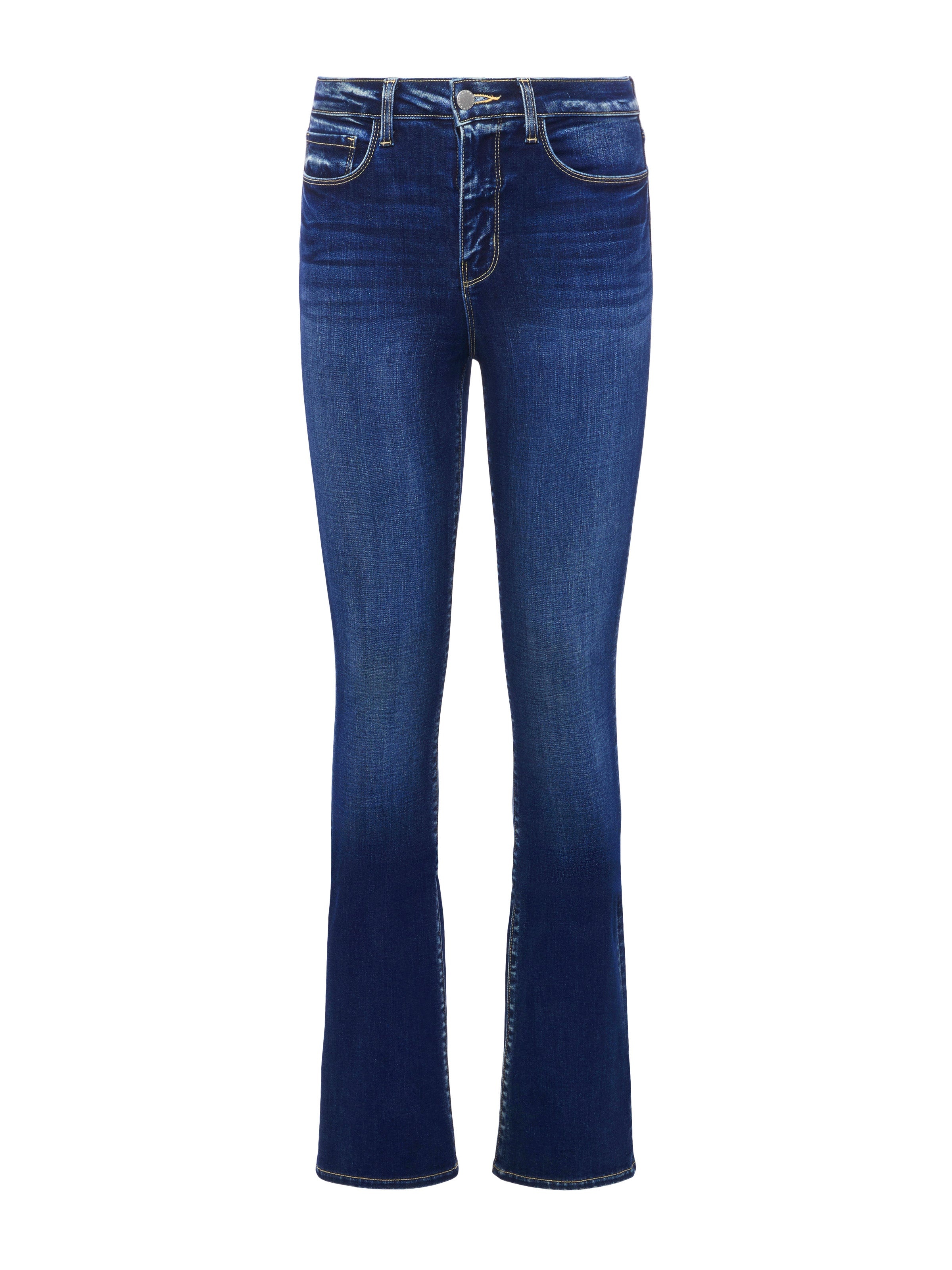 A classic high-rise jean in true-blue premium stretch denim that includes REPREVE, a sustainable, high-performance recycled fiber. Meticulous sanding and whiskering enhance fabric's character. Contoured waistband fits securely at the natural waist, then hugs from hip to knee before releasing into a slim bootcut hem. Super-stretch denim holds its shape, smoothing the figure without sacrificing comfort. Contrast topstitching highlights five-pocket construction. Zip fly closure. Style No. 2700PWH-COLU DETAILS & FIT - Model Details: Height: 5'10" | Bust: 32" | Waist: 24'' | Hips: 34.5'' | Wearing Size 25 - Rise: 9.75" - Inseam: 34" - Leg Opening: 17.5" MATERIALS & CARE Composition - 73% Cotton 25% Repreve Polyester 2% Spandex - Made in Los Angeles Care - Machine wash