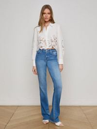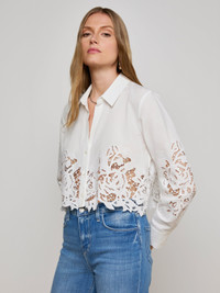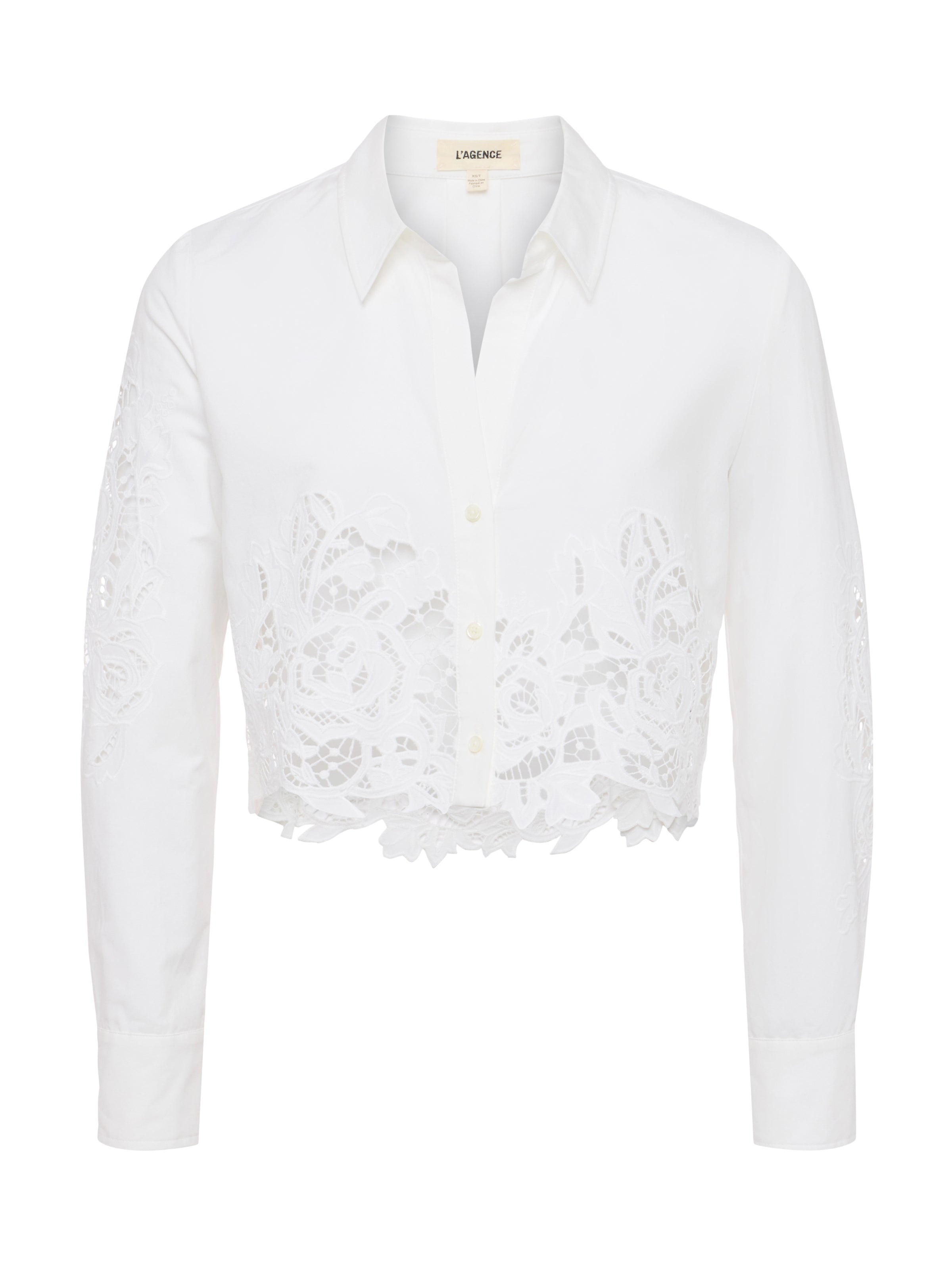 Style No. 40587REK-WHIT DETAILS & FIT - Model Details: Height 5'8" | Bust 32" | Waist 24.5" | Hips 34" | Wearing Size XS - About 19" From Shoulder to Hem - Sleeve Length: 23.25" MATERIALS & CARE Composition - 55% Cotton 45% Rayon - Imported Care - Hand wash gentle in cold water - Do not tumble dry - Do not bleach - Do not wring - Cool iron if needed