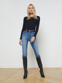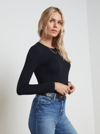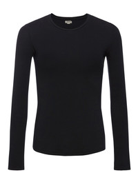 Modern and elegant slim-fit top in true black. Ultra-soft ribbed micro modal has a luxuriously silky hand and clings lightly to the figure. Look includes crew neck and sleek long sleeves. Beautiful wardrobe stable that works on its own or as a base layering piece. Style No. 5491MMS-BLAC DETAILS & FIT - Model Details: Height: 5'10" | Bust: 32" | Waist: 24'' | Hips: 34.5'' | Wearing Size XS - About 25.75" From Shoulder to Hem - Sleeve Length: 23.75" MATERIALS & CARE Composition - 95% Micro Modal 5% Spandex - Made in Los Angeles Care - Hand wash
