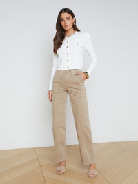 Our chic jacket-inspired cardigan, now in a ivory knit. The lightweight Toulouse crew-neck cardigan tapers from modern strong shoulder to cropped waist, beautifully balancing the silhouette. Gold embossed dome buttons add a luxe element. Pair with white or cream denim for a subtle tonal look. Style No. 8928NXT2-IVOR DETAILS & FIT - Model Details: Height 5’9.5" | Bust 32" | Waist 24" | Hips 35" | Shoe 8 | Wearing Size XS - About 19" From Shoulder to Hem - Sleeve Length: 23.25" MATERIALS & CARE Composition - 80% Rayon 18% Nylon 2% Spandex - Imported Care - Dry clean only