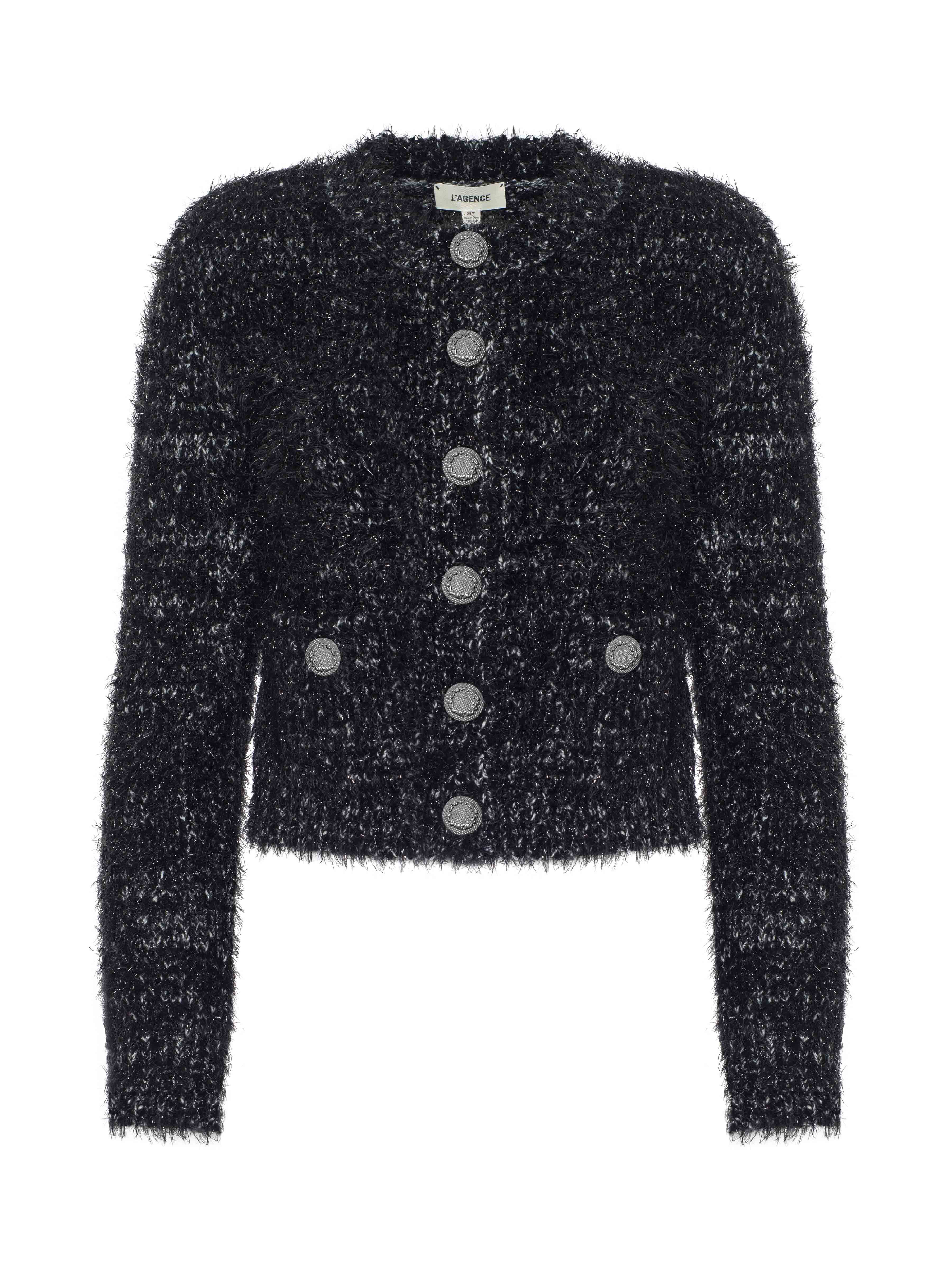 Style No. 80045FZY-BLGX DETAILS & FIT - Model Details: Height 5'10" | Bust 32” | Waist 23.5” | Hips 34.5” | Wearing Size XS - About 19" From Shoulder to Hem - Sleeve Length: 23.25" MATERIALS & CARE Composition - 44% Polyester 25% Acrylic 15% Cotton 11% Nylon 4% Lurex 1% Spandex - Imported Care - Dry clean only