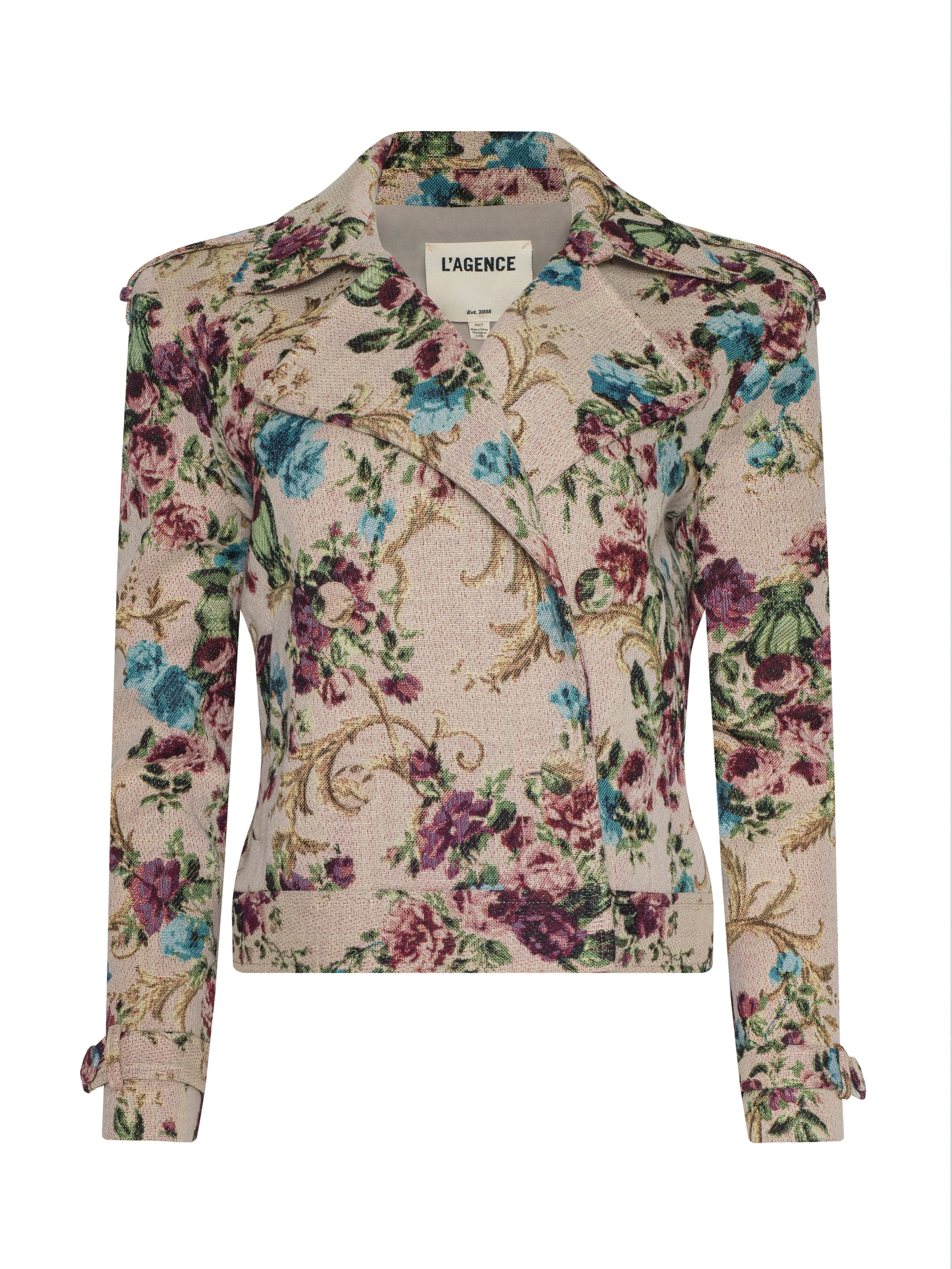 Style No. 1813FKP-TPFL DETAILS & FIT - Model Details: Height 5'10" | Bust 32" | Waist 23.5" | Hips 34.5" | Wearing Size XS - About 21.6" From Shoulder to Hem - Sleeve Length: 23.3" MATERIALS & CARE Composition - 54% Cotton 46% Polyester - Imported Care - Dry clean only