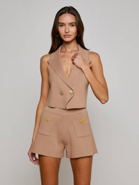 Style No. 80086FBA2-DCPG DETAILS & FIT - Model Details: Height 5'10" | Bust 32" | Waist 23.5" | Hips 34.5" | Wearing Size XS - About 19.6" From Shoulder to Hem MATERIALS & CARE Composition - 47% Cotton 38% Acrylic 15% Nylon - Imported Care - Dry clean only - Do not wash - No bleach - No tumble dry - Cool iron