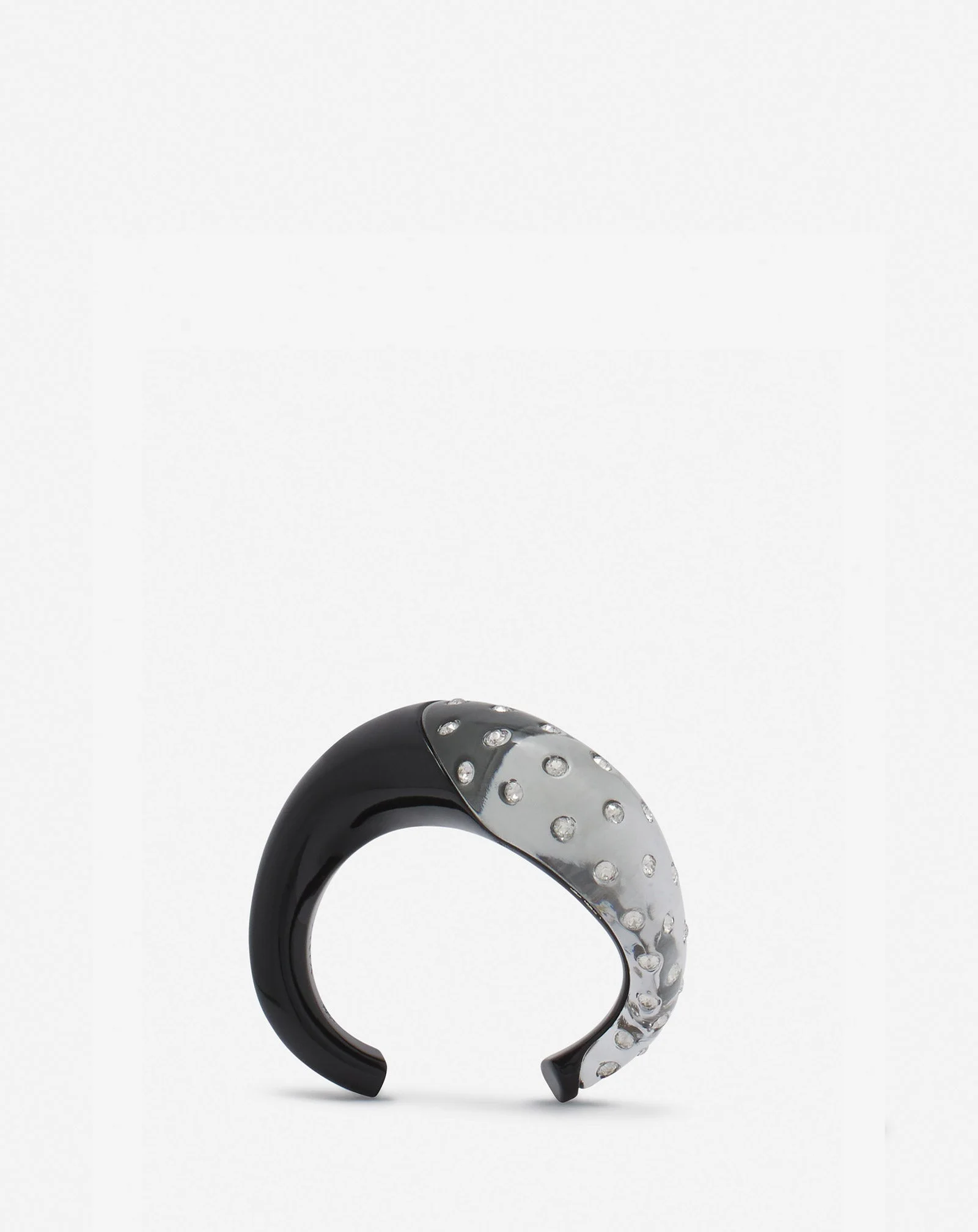 Drawing its inspiration from the 70s, this bracelet embodies one of the House's signatures, Contrast. It combines extra-shiny metals with the transparency of Plexiglas with sparkling rhinestones. Details - Fargo brass bracelet with rhinestones - Bi-material resin with crystals and metal - Lanvin logo engraved inside - Made in Italy Size & fit - Dimensions : 7.6 (L) x 2.6 (l) x 7 (h) cm / 2.9 (L) x 1.0 (l) x 2.6 (h) in Composition - Main fabric : 100% brass SKU: AW-CJFBL3-RSFG-E2510S0U