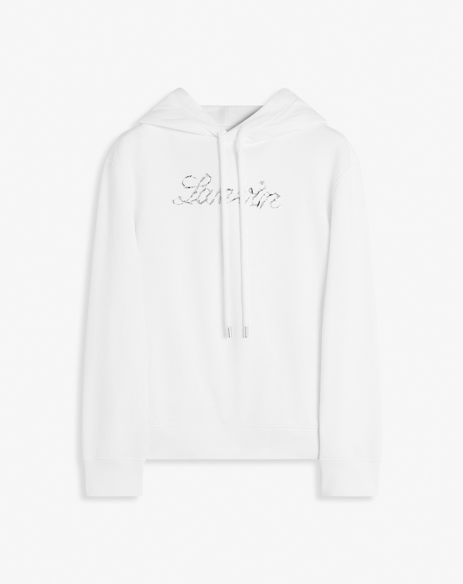 The Lanvin logo, embroidered with beads, adds an elegant and sophisticated touch to this hoodie with a comfortable fit. It's perfect for casual wear. Details - Lanvin bead embroidered cotton hoodie - Straight fit - Ribbed cuffs - 3D metal bead embroidered logo - Made in Italy Size & fit - This style fits true to size, take your normal size - For more information, please see our size guide. Composition - Main fabric : 100% cotton knitted,10% metal SKU: RW-HO9003-J176-P2501L