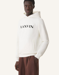 The Lanvin logo on the front of this hoodie adds a touch of timeless elegance to this men's wardrobe essential. The comfortable fit and soft fabric make it a stylish piece to pair with a casual outfit. Details - Lanvin embroidered cotton hoodie - Straight fit - Drawstring hood - Ribbed cuffs - Side welt pockets - Lanvin embroidered logo in contrasting cotton gabardine - Made in Portugal Size & fit - This style fits true to size, take your normal size - For more information, please see our size guide. Composition - Main fabric : 100% cotton knitted,100% polyester knitted SKU: RM-HO0005-F300-H25020XS