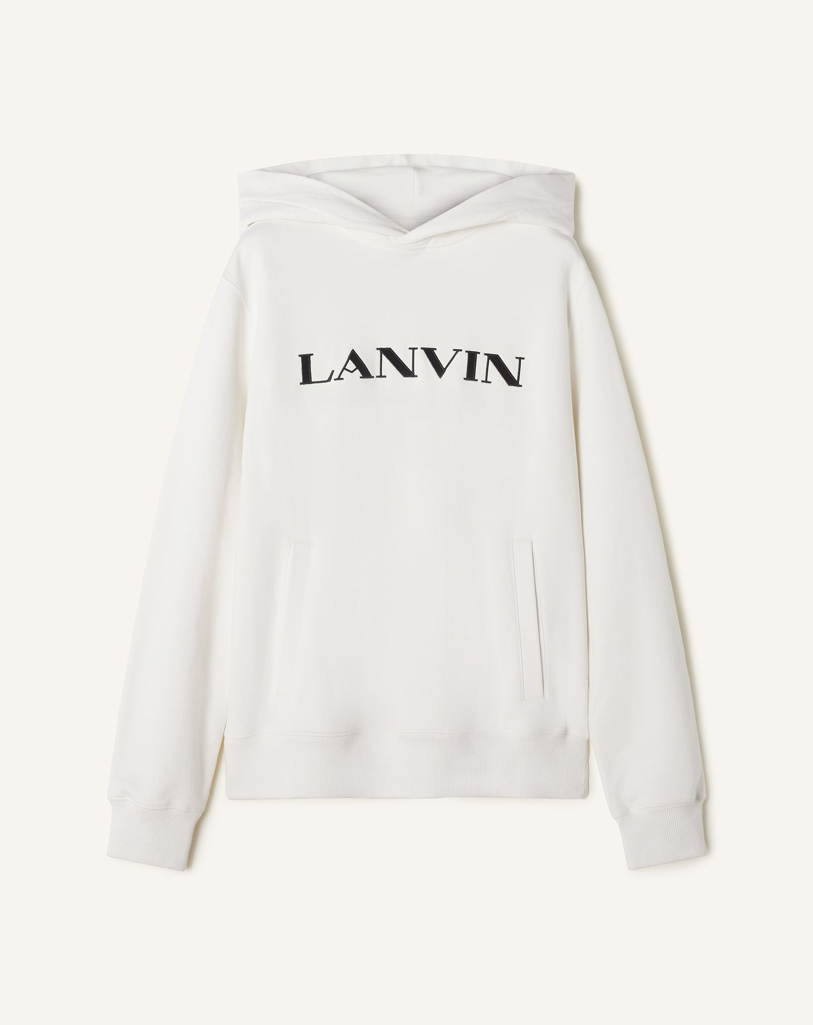 The Lanvin logo on the front of this hoodie adds a touch of timeless elegance to this men's wardrobe essential. The comfortable fit and soft fabric make it a stylish piece to pair with a casual outfit. Details - Lanvin embroidered cotton hoodie - Straight fit - Drawstring hood - Ribbed cuffs - Side welt pockets - Lanvin embroidered logo in contrasting cotton gabardine - Made in Portugal Size & fit - This style fits true to size, take your normal size - For more information, please see our size guide. Composition - Main fabric : 100% cotton knitted,100% polyester knitted SKU: RM-HO0005-F300-H25020XS