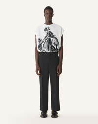 This t-shirt pays tribute to the Mother and Daughter logo created in the 1920s, symbolizing the relationship between Jeanne Lanvin and her daughter, Marguerite. The technique used to create this cotton fabric gives it a silk-like appearance. This piece is ideal for a casual yet elegant daytime look. Details - Mother and Daughter print t-shirt - Round neckline with slit at the nape of the neck - Contrasting topstitching - Large print in the front - Made in Italy Size & fit - This is a relaxed fit, size down if you are between two sizes - For more information, please see our size guide. Composition - Main fabric : 100% silk woven SKU: RM-TS0036-6257-P2600S