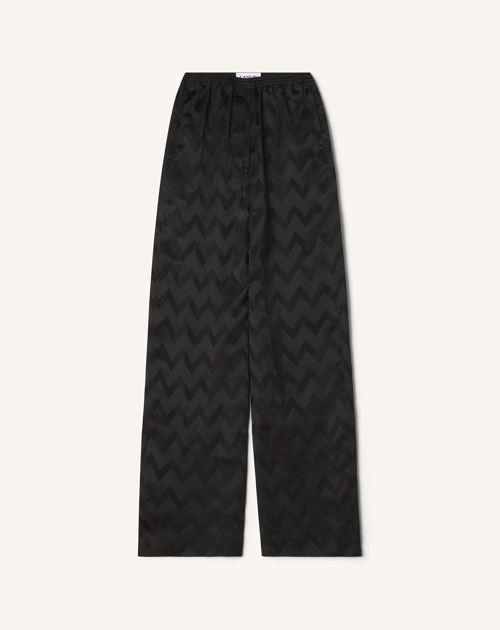 These pants take their inspiration from the flowing lines of the pajama fit, as a tribute to the first pajamas created in the 1910s by Jeanne Lanvin. They can be worn with the matching top to create an elegant and comfortable evening outfit. Details - Viscose pajama pants - Relaxed, flowy fit - Made in Portugal Size & fit - For more information, please see our size guide. Composition - Main fabric : 100% viscose woven - Lining : 100% silk woven SKU: RW-TR0035-6198-H251036