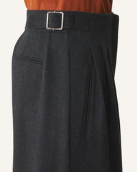 These pants elongate the silhouette with striking elegance. They are crafted from wool flannel, a fabric that creates a sturdy, wrinkle-resistant garment. It is both warm and soft, making it the ideal choice for winter wear. Details - Pleated flannel pants - Full-length, wide leg - Metal zipper and hook closure - Side pockets - Adjustable tabs - Made in Italy Size & fit - For more information, please see our size guide. Composition - Main fabric : 100% wool woven - Lining : 100% cotton woven SKU: RW-TR0027-6150-H251836