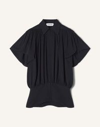 The rounded volumes of this top create a feminine and elegant silhouette. The silk Georgette lends an aura of sensual movement. This sumptuous fabric also adds depth to the piece, making it ideal for evening wear. Details - Silk Georgette puff-sleeve top - Loose, flowing fit and pleated design. - Fitted at the waist - Shirt collar - Hook closure - Topstitching details on the back - Made in Portugal Size & fit - For more information, please see our size guide. Composition - Main fabric : 100% silk woven SKU: RW-TO0010-3875-H2528534