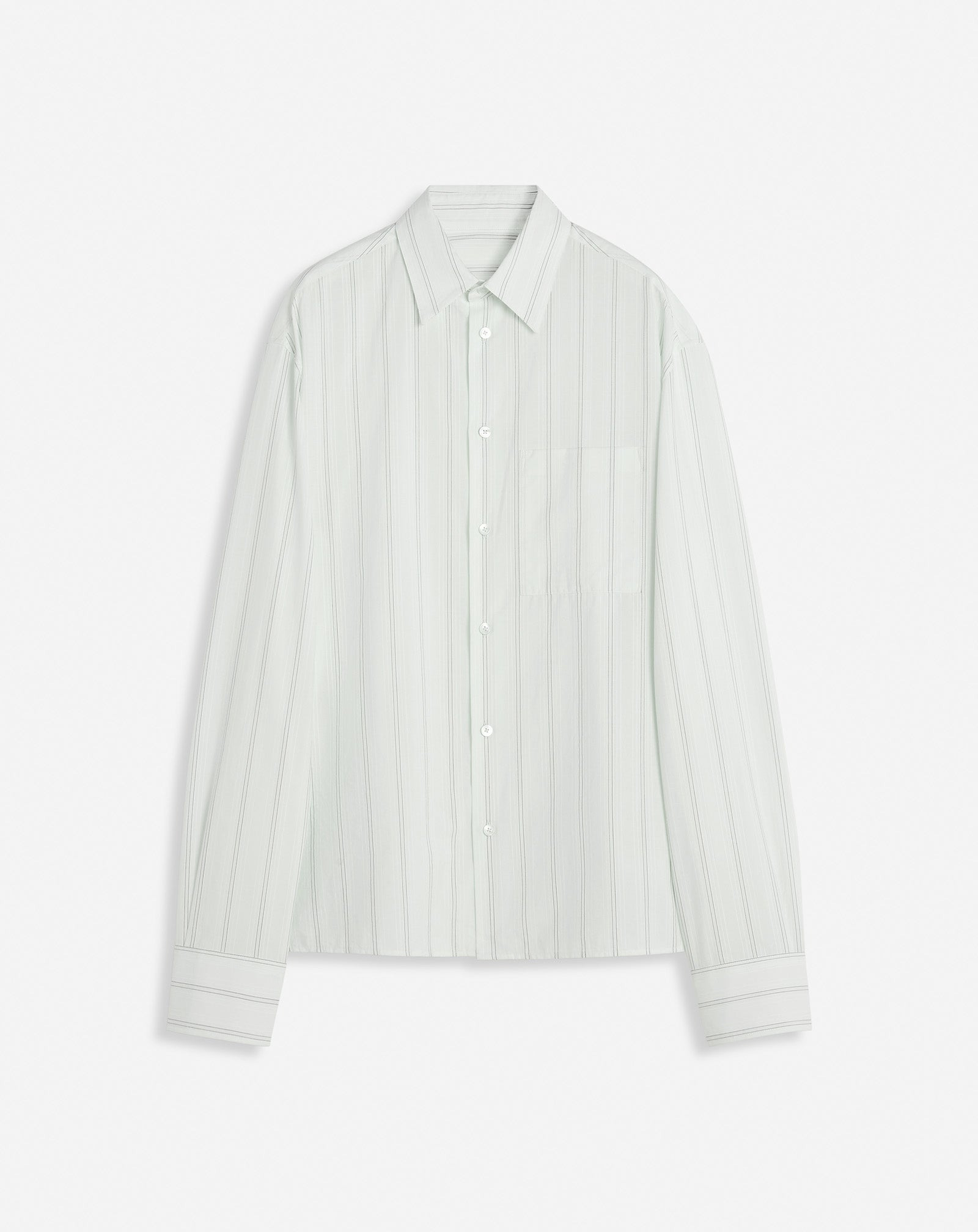 This shirt is made from fine cotton, with an exclusive design consisting of raised stripes. Its simple elegance perfectly integrates the Lanvin man's wardrobe. Details - Cotton and silk straight shirt - Single button placket on the cuffs - Mother-of-pearl buttoned fastening - One patch pocket in front - Made in Portugal Size & fit - This style fits true to size, take your normal size - For more information, please see our size guide. Composition - Main fabric : 68% silk woven,32% cotton woven SKU: RM-SI0407-6001-P25001041