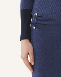 This dress is crafted from a blend of wool and cashmere. The fabric is soft, lightweight, and warm, and features draping reminiscent of some dresses found in the Maison's archives. The brooch adorning this piece adds an elegant, modern touch to a casual outfit. Details - Wool and cashmere midi dress - Tailored fit at the waist - High collar - Dropped shoulders - Ribbed cuffs - Draped waist - Lanvin signature brooch - Made in Italy Size & fit - This style fits true to size, take your normal size - For more information, please see our size guide. Composition - Main fabric : 80% wool knitted,20% cashmere knitted SKU: RW-DR0040-K065-H25251XS