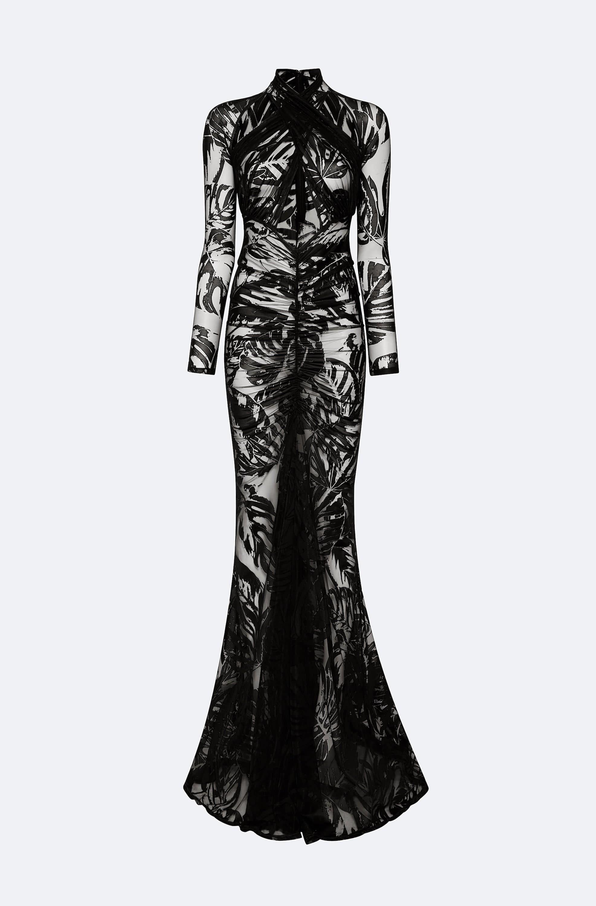 Burnout Jersey Halter Ruched Gown