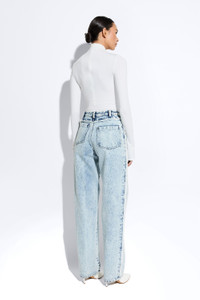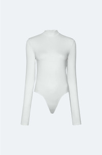 Featured in the Spring 25 Collection This stretch compact jersey mock neck bodysuit features long sleeves with subtle stacking detail at wrist and center back invisible zipper and snap closure. - Material: 83% Recycled Polyester 17% Elastane - Fit: Slim Fit. True to Size - Care: Machine Wash Cold - Model is 5'10 and Wearing a size S