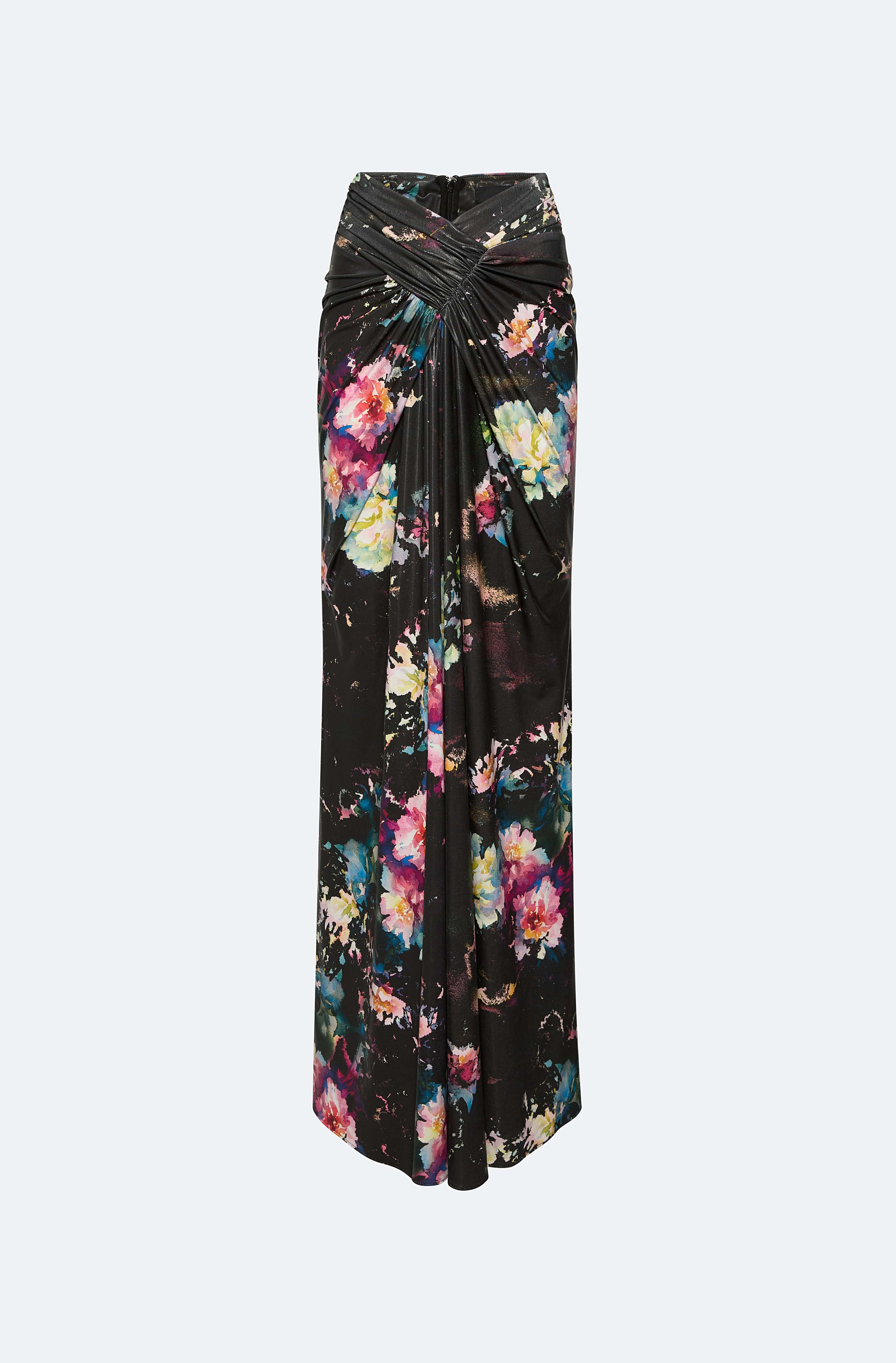 Featured in the Summer 25 Collection Wrap maxi skirt in new technicolor floral print crafted from our ultra-comfortable, lightweight stretch jersey. Features a zipper at side waist. Pair with our floral jersey bodysuit for a complete look. - Material: 94% Polyester, 6% Spandex - Care: Hand Wash Cold or Dry Clean - Fit: True to size - Model is 5'10 and Wearing a Size S