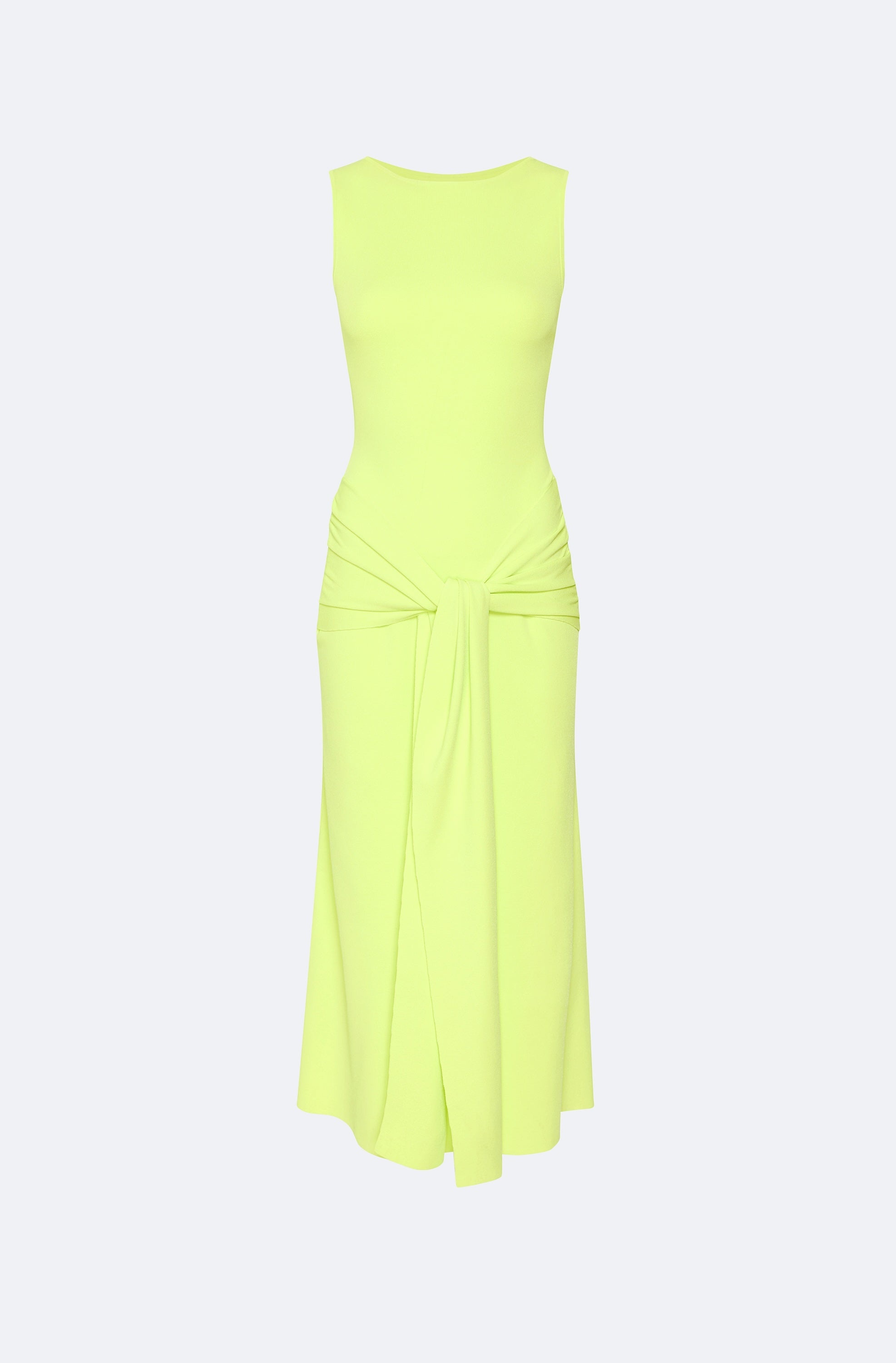 Boatneck dress in our bestselling matte viscose. Tie at the waist allows for an adjustable fit. - Material: 83% Rayon Viscose, 17% Elite Polyester - Care: Hand Wash Cold or Dry Clean - Fit: True to size. - Model is 5'10 and Wearing a size Small