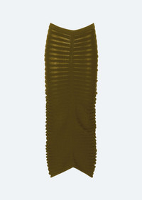 Featured in the Holiday 25 Collection Ribbed Skirt In Our Bestselling Matte Viscose Fabrication. Semi Sheer Style With A Peaked Hemline. Stretch In Fabric For Easy Wear. - Material: 83% Rayon Viscose, 15% Elite Polyester - Fit: True to Size - Care: Hand Wash or Dry Clean - Model is 5'11" and Wearing a size Small
