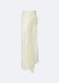 - Material: 61% Acetate, 39% Viscose - Trim: 100% Real Ostrich Feathers; Dyed Ostrich Feather, Struthio Camelus, Republic of South Africa - Care: Professional Dry Clean Only