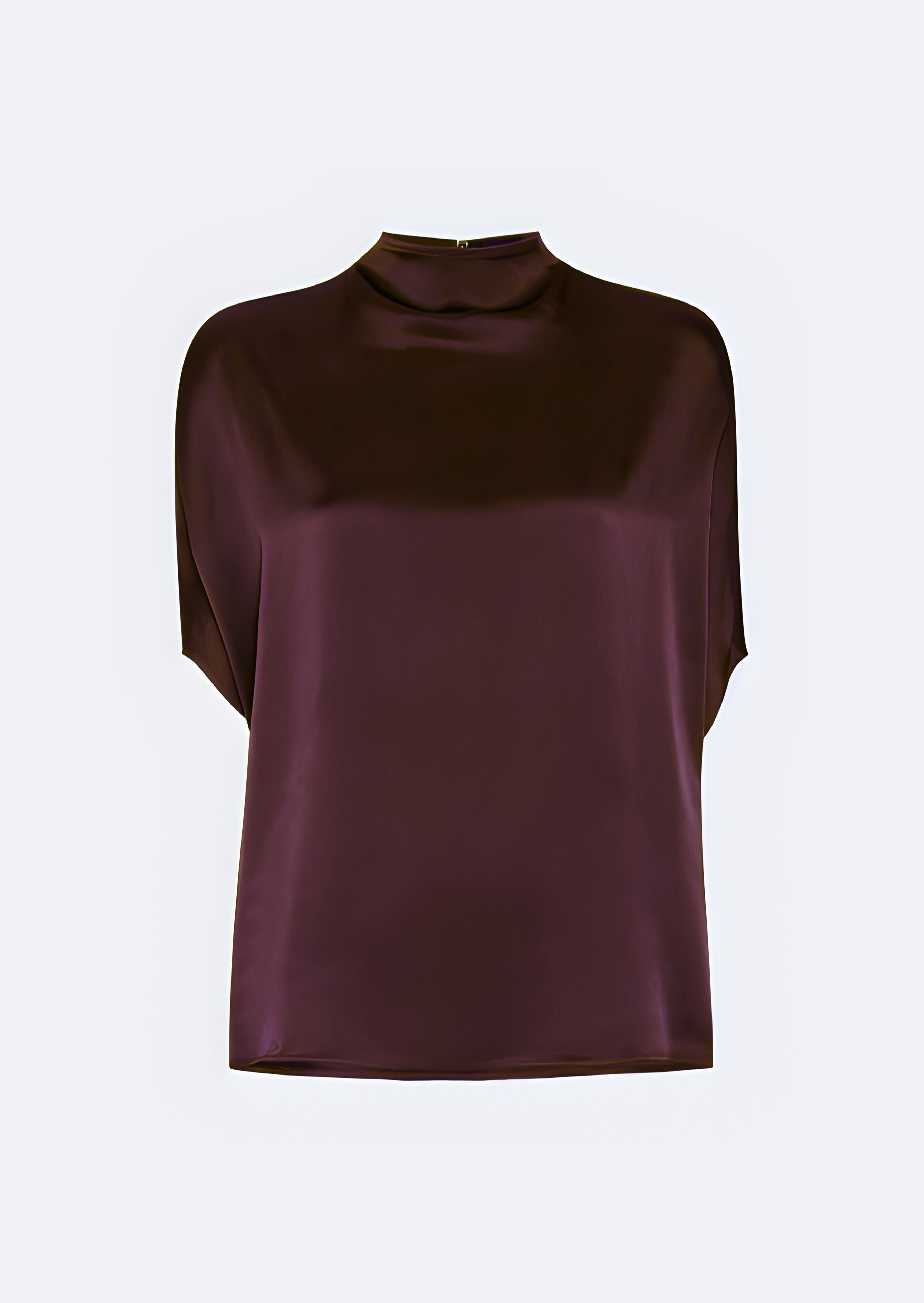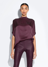 Featured In The Fall 2024 Collection Cape tee in our luxurious double face satin fabrication. Easy body allows this style to be tucked into pants and skirts. Invisible zipper at the back. - Materials: 61% Acetate, 39% Viscose - Care: Professional Dry Clean Only - Fit: True to size. For a more relaxed fit, size up. - Model is 5'10" and Wearing a S